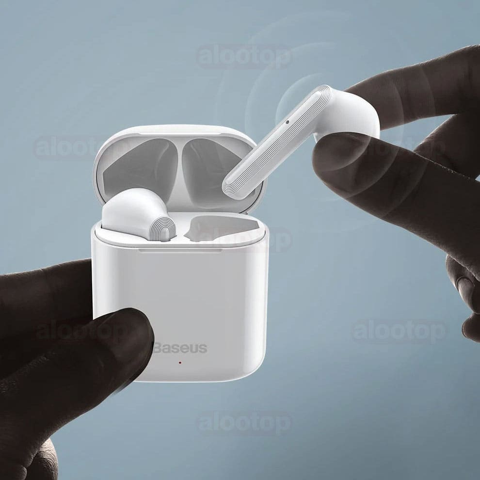 همانند بسیاری از هندزفری های بیسوس، داخل جعبه اصلی، ایربادها بیرون از کیس شارژ قرار گرفتهاند و بعد از باز کردن جعبه، خریداران پیش از هر چیز با خود هندزفری روبهرو میشوند. وزن ایربادها به کمتر از 5 گرم میرسد و روی بدنه آنها، خطوط ریزی دیده میشود که مانع از سر خوردن آنها میشوند. به علاوه، ایربادها به واسطه طراحی ارگونومی خود، خیلی خوب داخل گوش قرار میگیرند و کاربران، هرگز نباید نگران بیرون افتادن آنها باشند.
